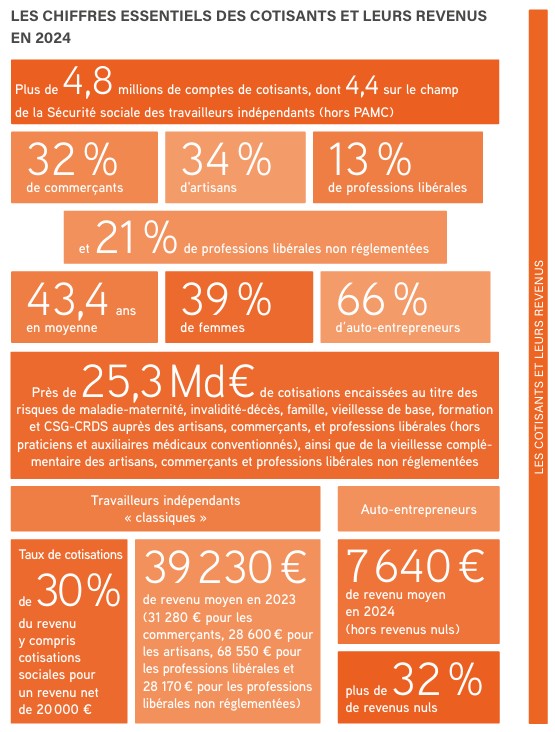 Fin 2024, la France comptait 4,8 millions de travailleurs indépendants, dont 4,4 millions relevant du régime social des indépendants (hors praticiens et auxiliaires médicaux conventionnés). Parmi eux, 34 % sont artisans, 32 % commerçants, et 21 % exercent une activité libérale non réglementée. L’Île-de-France, terre d’entrepreneuriat, concentre une part importante de ces effectifs, avec une croissance soutenue des auto-entrepreneurs (+8,6 % en 2024), tandis que les travailleurs indépendants « classiques » progressent plus modestement (+1,6 %).